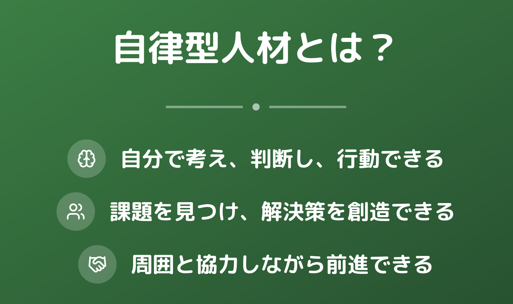 - 自分で考え、判断し、行動できる人