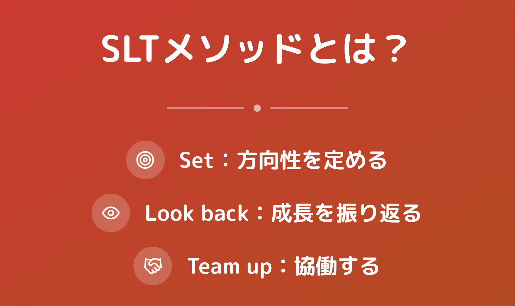 SLTメソッドは、Set → Look back → Team upの3つのステップを統合することで真の効果を発揮します。